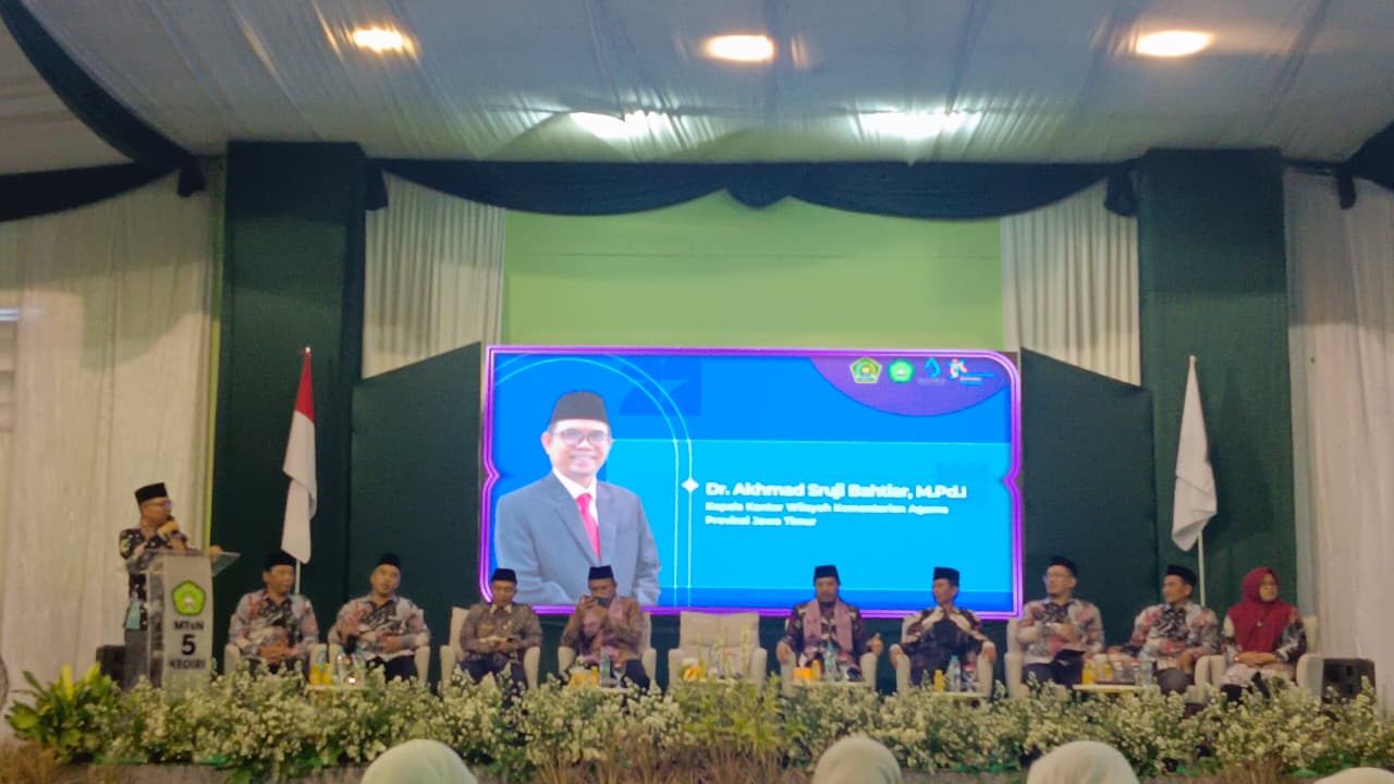 Kediri, 9 Oktober 2025 – Kepala MTsN 10 Blitar, Luthfi Mayasari, S.Pd.I, M.Pd., menghadiri Rapat Koordinasi dan Evaluasi (Rakorev) Kepala MTsN se-Jawa Timur yang digelar di MTsN 5 Kediri. Acara tersebut dibuka langsung oleh Kakanwil Kementerian Agama Provinsi Jawa Timur, Dr. H. Akhmad Sruji Bahtiar, M.Pd.I., dan turut dihadiri kepala-kepala MTsN dari berbagai kabupaten/kota di Jatim.