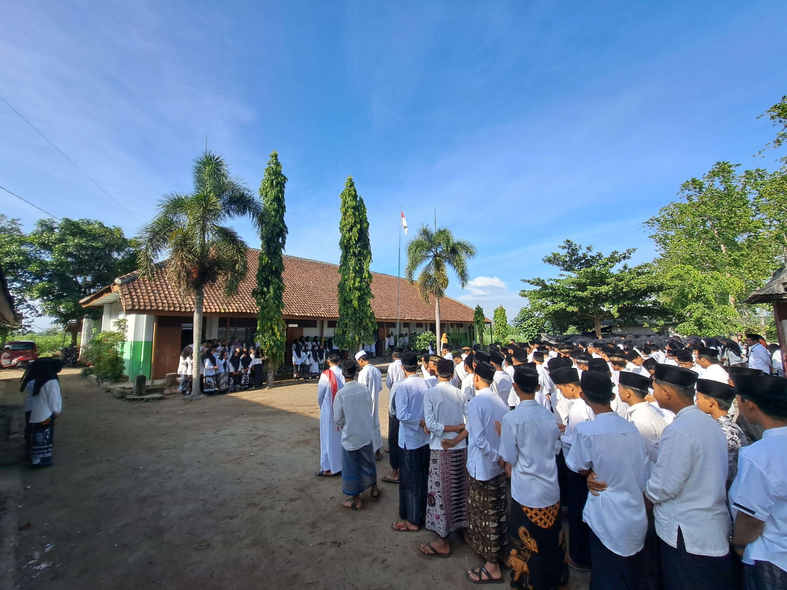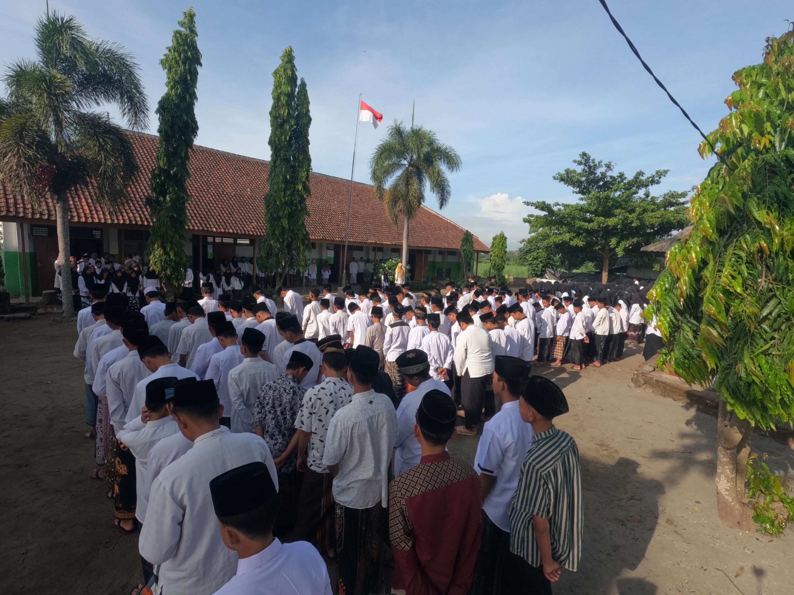 Upacara berlangsung tertib dan hikmat, diawali dengan pengibaran bendera Merah Putih oleh pasukan pengibar bendera madrasah. Seluruh peserta upacara menyanyikan lagu Indonesia Raya dan Mars Santri dengan penuh penghayatan. Suasana semakin khidmat ketika pembacaan puisi bertema kepesantrenan oleh perwakilan siswa, yang menyentuh hati semua yang hadir.