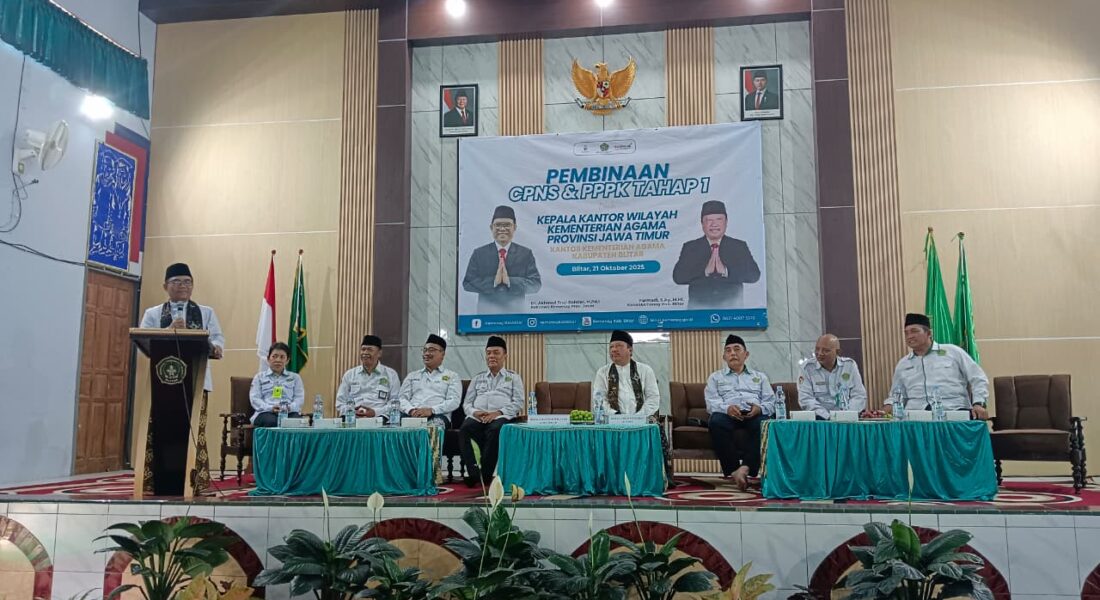Blitar, 21 Oktober 2025 – Dalam rangka meningkatkan kompetensi dan penguatan integritas Aparatur Sipil Negara, MTsN 10 Blitar turut serta menghadiri kegiatan Pembinaan bagi Calon Pegawai Negeri Sipil (CPNS) dan Pegawai Pemerintah dengan Perjanjian Kerja (PPPK) Tahap I. Acara yang digelar di MTsN 2 Blitar ini menghadirkan para pimpinan teras dari lingkungan Kementerian Agama, menandakan pentingnya acara ini bagi peningkatan kualitas sumber daya manusia.