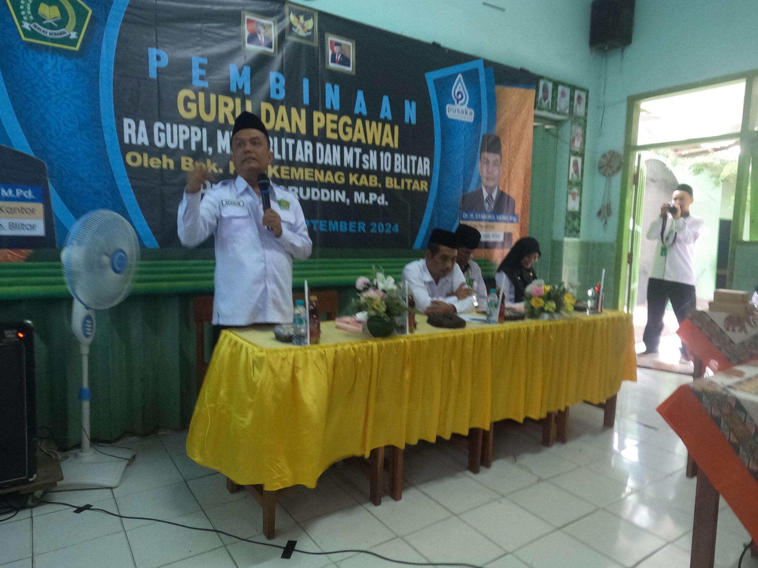 DCIM100GOPROGOPR3899.JPGBlitar, 23 September 2024 – MTsN 10 Blitar turut serta dalam kegiatan Pembinaan Guru dan Pegawai yang diselenggarakan oleh MIN 6 Blitar, bersama dengan RA GUPPI Ponggok. Acara yang berlangsung di Aula MIN 6 Blitar ini dihadiri oleh Kepala Kantor Kementerian Agama Kabupaten Blitar, Drs. H. Baharuddin, M.Pd., serta Plt. Kepala Seksi Pendidikan Madrasah, Dr. H. Syaikhul Munib, M.Ag., sebagai pemateri utama. Keikutsertaan MTsN 10 Blitar dalam kegiatan ini merupakan wujud komitmen madrasah untuk terus meningkatkan kompetensi pendidik dan tenaga kependidikan.