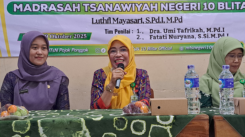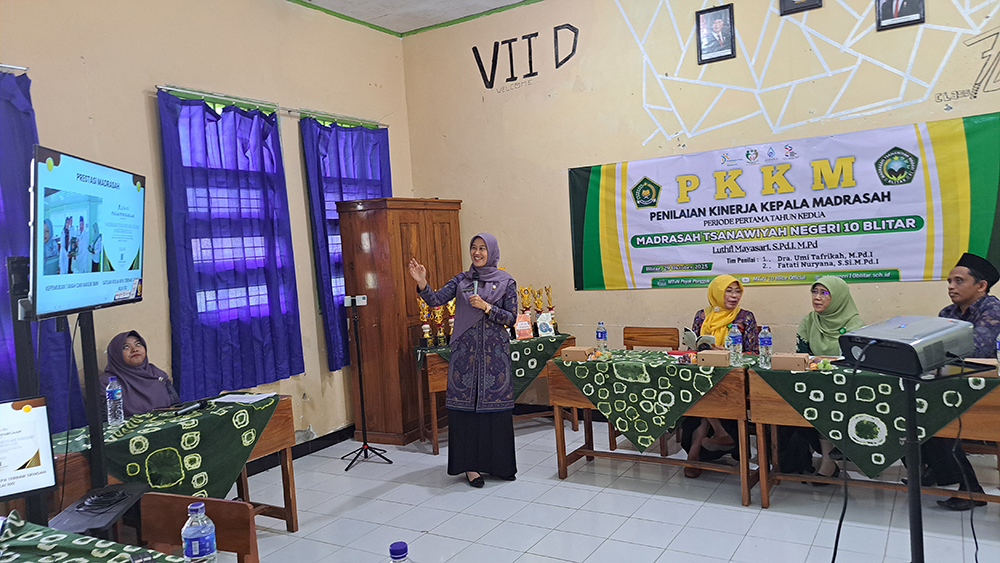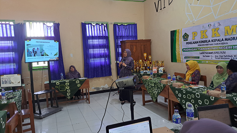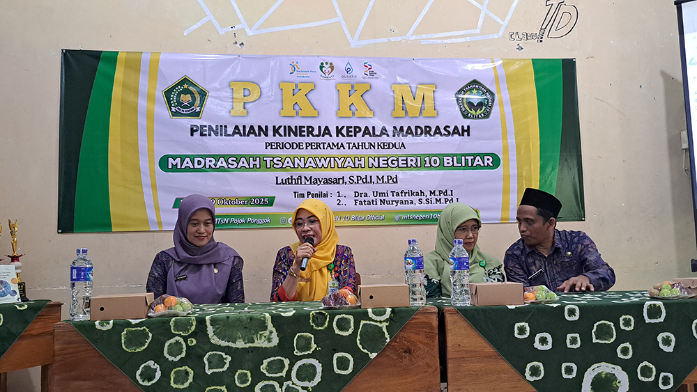 Blitar, 29 Oktober 2025 – MTsN 10 Blitar hari ini menerima kunjungan tim penilai dalam rangka Penilaian Kinerja Kepala Madrasah (PKKM) periode pertama tahun kedua. Kegiatan yang berlangsung di ruang madrasah ini dihadiri oleh Kepala MTsN 10 Blitar, Ibu Luthfi Mayasari, S.Pd.I., M.Pd., beserta seluruh perangkat madrasah. Penilaian ini merupakan proses rutin yang dilakukan untuk mengevaluasi kinerja kepemimpinan kepala madrasah dalam mengelola pendidikan.