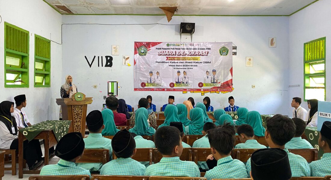 Blitar, 19 September 2024 – MTsN 10 Blitar telah menyelenggarakan Pemilihan Ketua dan Wakil Ketua Organisasi Siswa Intra Madrasah (OSIM) untuk masa bakti 2024/2025. Kegiatan yang merupakan implementasi nyata dari Projek Penguatan Profil Pelajar Pancasila dan Rahmatan Lil ‘Alamin (P5RA) dengan tema “Suara Demokrasi” ini berlangsung lancar dan partisipatif, melibatkan seluruh siswa kelas VII, VIII, dan IX.