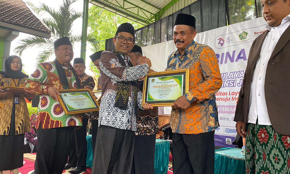 Blitar, 12 Desember 2024 – MTsN 10 Blitar mendapatkan kehormatan menerima penghargaan langsung dari Kepala Kantor Wilayah Kementerian Agama Provinsi Jawa Timur, Dr. Akhmad Sruji Bahtiar, M.Pd.I., dalam acara Pembinaan Aparatur Sipil Negara (ASN) yang digelar di lingkungan Kemenag Jawa Timur. Penghargaan ini diberikan sebagai bentuk apresiasi atas kontribusi hibah tanah (jariyah) dari MTsN 10 Blitar kepada Kementerian Agama Republik Indonesia, yang akan digunakan untuk pembangunan Ruang Kelas Baru (RKB) guna mendukung peningkatan kualitas pendidikan di madrasah.