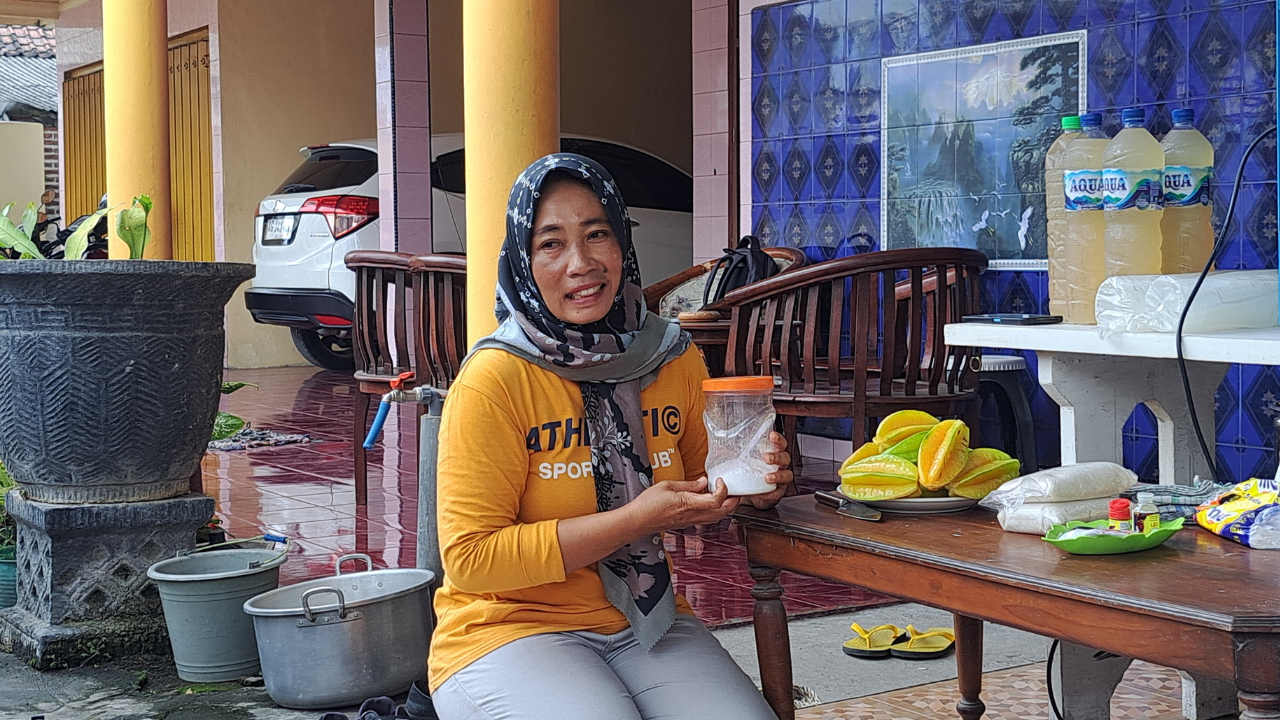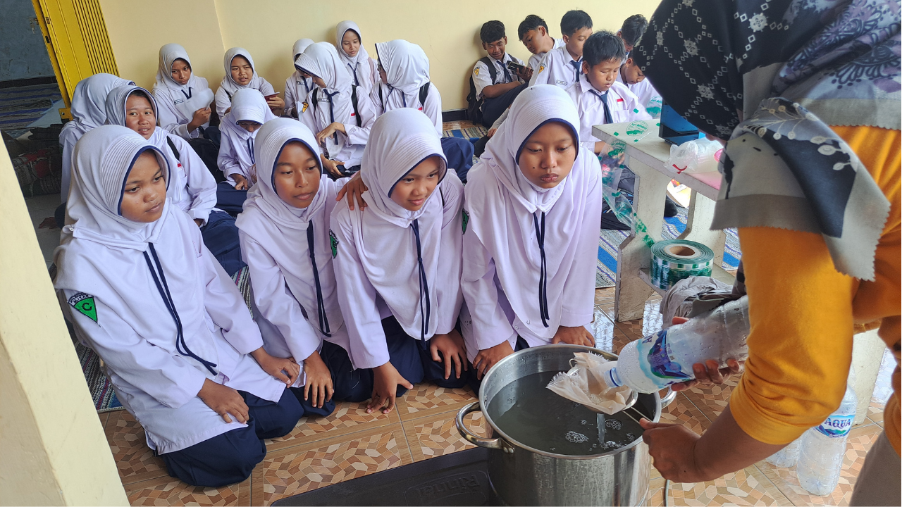 Dalam kegiatan tersebut, para siswa mendapat kesempatan untuk melihat langsung proses pembuatan sari belimbing, mulai dari pemilihan bahan, pengolahan, hingga pengemasan produk. Mereka juga diberikan penjelasan tentang strategi pemasaran dan pentingnya menjaga kualitas serta kebersihan produk agar mampu bersaing di pasaran.