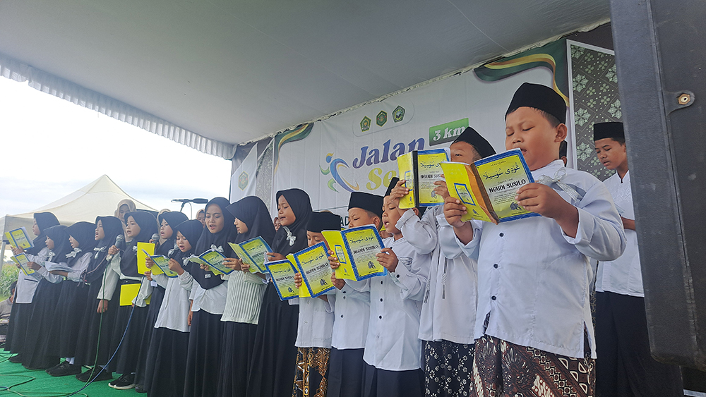 Rute jalan sehat menyusuri lingkungan sekitar Desa Pojok diikuti oleh ribuan peserta dari berbagai usia, menciptakan pemandangan penuh warna dan keceriaan. Semangat kebersamaan terpancar jelas, merekatkan tali silaturahmi antar lembaga pendidikan dan masyarakat.