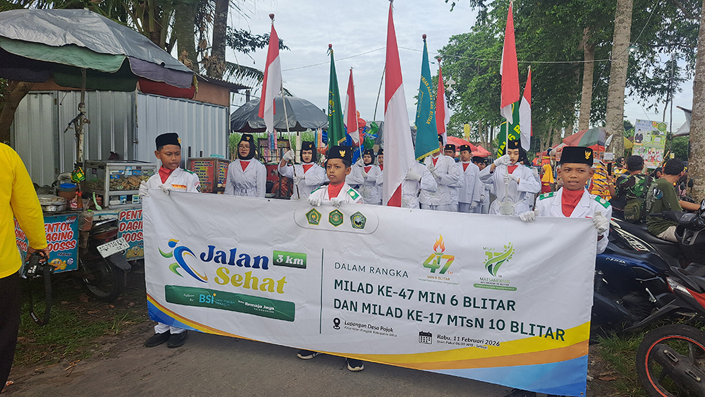 Blitar, 11 Februari 2026 – Dalam suasana penuh kebahagiaan dan kebersamaan, MIN 6 Blitar dan MTsN 10 Blitar menyelenggarakan kegiatan Jalan Sehat dalam rangka memperingati Milad ke-47 MIN 6 Blitar dan Milad ke-17 MTsN 10 Blitar pada Rabu (11/2/2026). Acara yang berlangsung meriah ini diikuti oleh berbagai elemen, mulai dari RA GUPPI, MIN 6 Blitar, MTsN 10 Blitar, hingga masyarakat Desa Pojok dan sekitarnya dengan antusiasme yang luar biasa.